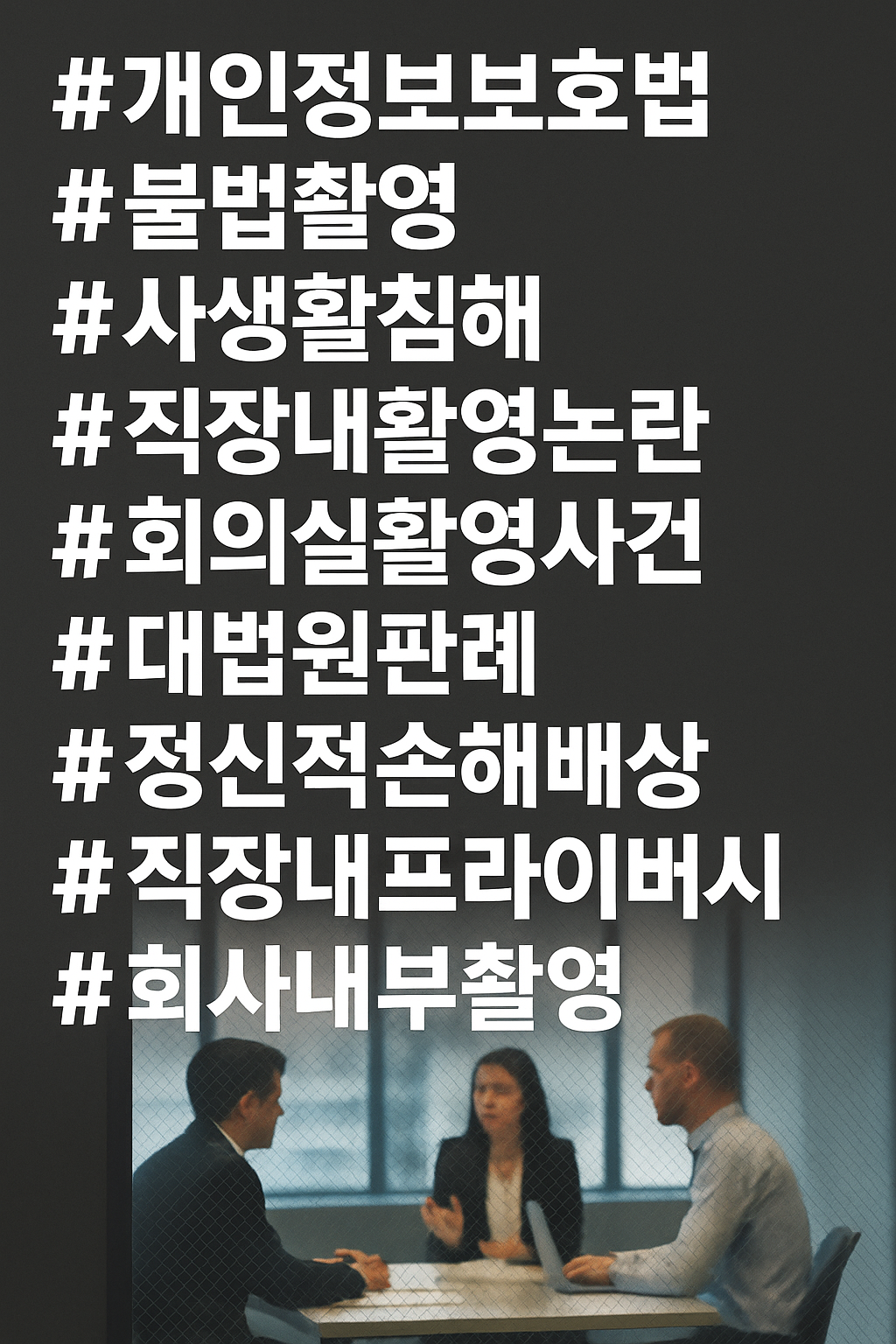 현대의 직장 내 공간은 CCTV, 모바일 기기, 비대면 커뮤니케이션 등으로 인해 물리적·디지털 경계가 흐려지고 있습니다. 회의실은 중요한 논의가 이루어지는 민감한 공간이지만, 유리창을 통한 무단 관찰이나 촬영이 문제로 떠오르기도 합니다. 2020년 대법원은 회사 복도에서 회의실 내부를 휴대폰 줌 기능으로 촬영한 사건에 대해, 사생활 침해 및 개인정보보호법 위반으로 판단하였습니다. 이 글은 해당 판례를 중심으로, 사생활의 법적 보호범위, 무단 촬영의 위법성 그리고 실무에서 기업 및 개인이 반드시 숙지해야 할 포인트에 대해 작성하였습니다.